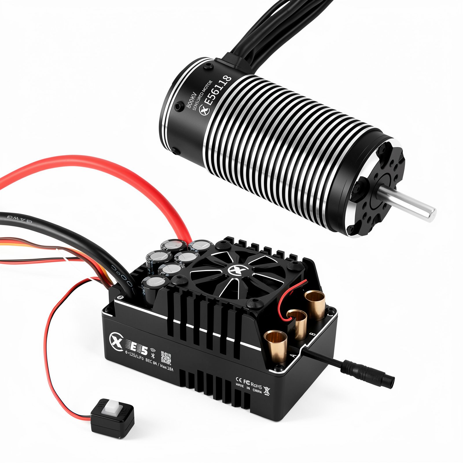 - IP67 rating Waterproof, XC E5Pro RC ESC is epoxy potted to protect electronics, in the meanwhile promote heat transfer.